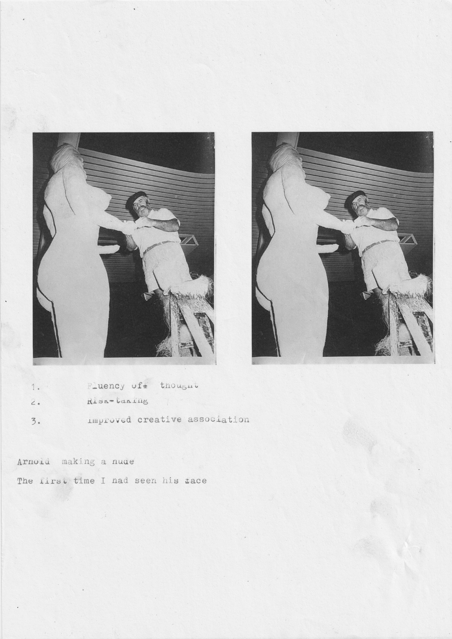 It’s easy to write a sensationalist piece when you’re sitting on a good story. Way easier than you would think. It’s almost better to start with a simple piece of information and make it interesting. This is not a simple piece of information. The conversation that transpired between Corrina and I during our time spent together was full of theatre and interest. And yet, not much of it can empirically be used in writing. If you’ve been paying attention, you can guess at its skeleton. Arnold had some kind of manic depressive disorder, most likely bipolar. There’s a love story in there, a tragedy, a comedy. And at the end of our talk, there are still gaps. I still don’t know anything about Arnold’s life before around ‘64 ( he was 38 by then), or why he signed his work ‘Rip’, or whether anyone knew where that giant golden horse of his went. Again, the feeling of a near-miss. Like I grazed something good a few times but didn’t catch it. The prospect of what could have been: the detriment of imagination! The seductive trap of using it to gain insight into a timeline that isn’t even our own. How special. How ordinary - that we are given this gift and use it to doubt ourselves. It is the human cliche over which I trip. Let’s play.